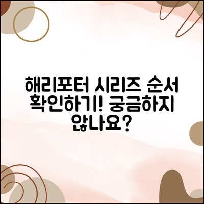 여러분, 혹시 해리 포터 시리즈의 순서를 헷갈리신 적 있나요? 처음 이 시리즈를 접했을 때, 저도 작품들이 여러 편으로 나눠져 있어서 어떤 순서로 봐야 할지 고민했던 기억이 납니다. 여러분과 같은 고민을 하는 팬들이 많을텐데요. 그래서 오늘은 해리포터 시리즈 순서를 쉽게 정리해볼까 해요!